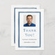 Ett modernt, minimalistiskt tackkort. Vit bakgrund och faux silver och blue ramar. Anpassa och lägg till foton, namn och födelsedagsdatum. Tillbaka: Mall för tackkort och namn.