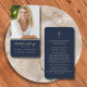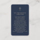 Affärskortets dimensioner: 3,5 x 2,0 tum. Den här enkla mallen för betalkort på en klassisk blå bakgrund med skripttypografi av elegant guld kan ges som en keepsaké vid en Firande av Life- eller begravningstjänsten eller skickas som en speciell hyllning till dem som inte kunde närvara. Anpassa det här kortet med ett favoritfoto och välj en bön eller dikt på baksidan av kortet. Enkel att anpassa.