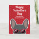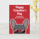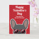 Fransmän, skicka ett valentinskort till din människa bara från dig. Designen har en illustration av en söt blå fransk bulldogg som bär röda solglasögon på en röd bakgrund med ett subtilt hjärtmönster. Texten på framsidan lyder "Glad Alla hjärtans dag från den du älskar mest" men kan ändras. Texten på insidan lyder "Jag älskar dig paw-sitivt" men kan också ändras.