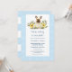 Vem gör inte kärlek hundar och spädbarn? Den här inbjudan till hund-babyduschen är ett underbart val för hundälskare. Överst i inbjudan, en Fransk bulldog omgiven av färgfulla blommigtar som går ut mot dig. Under hund annonserar texten "Vi lägger till i vårt paket!" roligten tillfälle till dina gäster. Ett sött blått gräns med vit tass avtryck och baby fötter omger texten. Grattis till din nyfödd bebis-pojke med den här söta, marionettduschinbjudan.