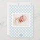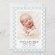 Blått Gingham Baby Födelsekort Fotokort Meddelande