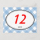 Blått gingham lantlig rustik bordnummer för bröllo vykort