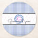 Blått Gingham-monogram Underlägg Papper Rund