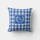 Elegant och rustik blå Gingham Monogram-vapen kastkudde.