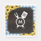 Blått Gingham & Solrosor Rustik Monogrammerad Gril Pappersservett