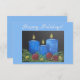 Tre blå ljus, handritad konst, Glad helg-kort.