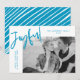 Skicka glädje till vänner och familj med ett enkelt Glatt helgdag-kort av Late Bloom Paperie! Det moderna helgdag har "Glatt" i ett blått handskript. Anpassa kortets framsida genom att lägga till foto, anpassningsbar hälsning, familj namn och året. Kortet återgår till visning ett blått och vitt diagonalt rand mönster.