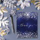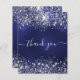 En marin blå bakgrund färg. Den blå färg är ojämn. Dekorerad med faux-damm från silver glitter. På stora, vita, handskrivna skript och texten: Tack. Tillbaka: Anpassa och lägg till tackkort och namn. Namn är skrivet med ett modernt, hanterat skript med dekorationer. Om du bara vill behålla utslagen tar du bort exemplet namn lämnar du blankstegen eller symbolerna framför och efter namn.