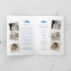 Dubbla av -sidig blommigt, glöm-mig-ej blommor i bläckt konstbegravningsprogram i blått, vitt, med beröring av gult och grönt på vitt och mörk blått. Byt bara ut exempeltexten och de omedelbara fotoinnehavarna mot dina egna speciella foton och informationsdetaljer. Teckning och vattenfärgsgrafik med originalfärg och design av Sarah Trett för www.mylittleeden.com (foton är bara platshållare bilder som du kan ersätta med dina egna foton).