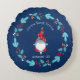 Blått Gnome Sweet Gnome Modern Elf Blommigt Wandea Rund Kudde