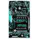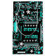Coolans utformning med en sluten kretskort i svart, vitt och blått med en snygg beröring. En handväska med en utformning av anpassadet som du kan anpassa med din egen text, bilder och dina idéer. Bilden skapades med hjälp av ett originalfoto och digitala tekniker.