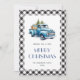 God jul-kort med svart och vitt buffelhätta i anpassningsbar med blå lastbil. Anpassa enkelt det här vattenfärgsblåa helgdag-kortet lastbil med din familj namn.