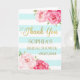 Möhippan tackar dig kort i ljusa pastellfärgade blått för aquaturkoshimmel, och vitrandmönster med guld- rosa vattenfärg för text och för vintage blommar.