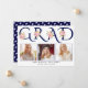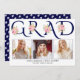Tungt blått och vitt GRAD-typografi rosa ros fotot studenten. Den innehåller "GRAD" från ord i ett dekorativt teckensnitt i marinblått, buketter av rosa ros och tre foton. Baksidan har en mönster med vita studentmössor i blått.
