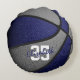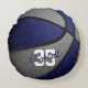 Den här basketbollens färg-kudde för en flicka eller pojke har en realistisk bild av en basket som har omväxlande blått och grått-färgade paneler - anpassa med namn i ett "autograph"-stil-teckensnitt ovanför idrottsmannens jersey-nummer - av katz_d_zynes