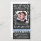 God jul helgdag-fotokort med en ritbordsbakgrund, massor av grått-snurrar och text som läser God jul, en sträng av träd ljus i blå och grått, grått och blå hängornament, och områden som du kan anpassa dessa vackra och ljusa helgdag-kort med ditt foto och namn!