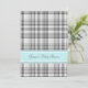 Personlig barnduschinbjudningar i elegant och modern light pastel aqua himlar blue, grått och vit vintage land plaid mönster. Anpassade med din text, kontakta oss för att begära en ändring av färg.