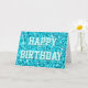 Blått "Grattis på födelsedagen" på framsidan och i Kort
