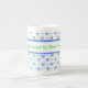 En söt, ett anpassade med china kaffe mugg, med ett mönster av bögar och prickar i blått och grönt på vit bakgrund från en handmålad design av Judy Adamson!! Samordning av tekruka och pitcher finns också.