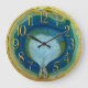 Blått- & gröntagaten Geode med kristallguld Stor Klocka