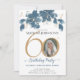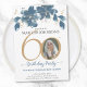 Blått Guld-Blommigt Anpassningsbar Foto 60:e födel Inbjudningar