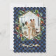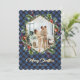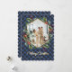 Elegant blå och guld visade ett foto-God jul-kort med ett geometriskt foto ram omgivet av en hollisk krans mot en blå buffel plaid mönster. Anpassa enkelt det här helgdag med foton och text.