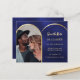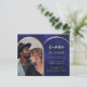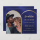 Blått guld-fotobåge bröllop spara datum-kort