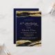 Bjud in dina vänner och nära och kära till din 16-årsfest med denna moderna födelsedagsinbjudan i marinblått och guld.