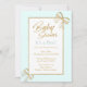 En elegant, modern, abstrakt blå och guld glitter-chic med tryckt guld glitter-handskriven typografi. Den här pojkbabyinbjudan är perfekten som skrivs ut för alla speciella händelser i mor. Anpassa den här designen med din information och ditt monogram först.