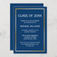 Meddela er inbjudan till studenten i stil med denna klassiska marinblått och guld studenten. Perfekt för en högre studenten, högskoleexamen eller studentfest! Mönster är platt tryckta illustrationer/grafik - INTE FAKTISKT GOLD FOIL.