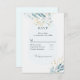 Modern vattenfärg, blomsterinspirerad svarsblankett i blåa och gyllene färger. Perfekt för ditt bröllop och enkel att redigera. Fyll i dina uppgifter, du kan välja typsnitt, position osv. individuellt genom "vidare anpassa".