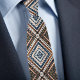 Denna digitalt redigerade AI-design har ett elegant blått, guld-, kräm- och rostdiamantmönster som blandar klassisk stil med modern förfining. De rika färgtonerna och det exakta geometriska arrangemanget skapar en förfinad men ändå konstnärlig look, perfekt för bröllop, affärsmöten och speciella tillfällen. Denna stilrena slips lägger till en touch av färg och personlighet till vilken garderob som helst, vilket gör den till ett idealiskt val för dem som uppskattar modig, polerad mode.