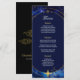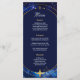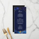 Överraska dina gäster med en matupplevelse som är skriven i stjärnorna med denna blå-guld måne mystiska himmelska astronomi bröllopsmeny. Uppställd under en romantisk midnattsblå himmel, har denna eleganta design en strålande gyllene måne som accentueras av känsliga stjärnbildsdetaljer och en mjuk stjärnskimrande glans. Den mystiska stämningen förstärks av en magisk galax vattenfärg bakgrund, fylld med drömliknande rymdinspirerade texturer som frammanar universums under. Perfekt för par som älskar modern rymdtematiserad astronomi-stil, tillför denna meny raffinerad kosmisk charm till ditt dukat bord samtidigt som den vackert presenterar din noggrant kurerade festmåltid.