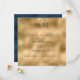 Vacker brud och brudgum monogram högst upp på detta vackra bröllop Bevara datum-kort. Falsk guld bakgrund med djupblå typsnitt för att samordna med den slitna blå baksidan av denna eleganta inbjudan. Absolut fantastiskt.