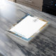 Anteckningsbok med en vacker blå, guld och vit marmorerad design som ger ett lyxigt och modernt utseende.