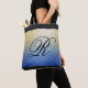 Blått Guld Ombre Glitter Design med Monogram Tygkasse