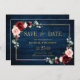 Blått Guld Ram i Burgundy Blommigt Spara datum