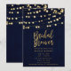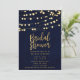Blått Guld Rustik Trä & Ljus Bröllopsfest Inbjudningar
