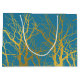 En vacker utformning med faux guld träd gren silhuettes med blå bakgrund färg. Den här eleganten, guld träd grenar, skapar en sofistikerad biet av abstrakt konst. Perfekt födelsedagspresent, daghemsdekoration, barnrumskonst, hemdekanter, Julklapp eller gåva till andra speciella tillfällen.