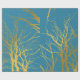 En vacker utformning med faux guld träd gren silhuettes med blå bakgrund färg. Den här eleganten, guld träd grenar, skapar en sofistikerad biet av abstrakt konst. Perfekt födelsedagspresent, daghemsdekoration, barnrumskonst, hemdekanter, Julklapp eller gåva till andra speciella tillfällen.