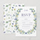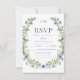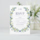 Contemporary och romantik: De här OSA-responskorten för ett vår/sommar-bröllop har vackra marinblått och gult blommor som skapar en botanisk utformning och elegant.