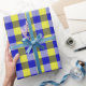 Blått Gult Gingham Checkdesign Presentpapper