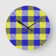 Blått Gult Gingham Checkdesign Rund Klocka