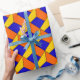 Blått, gult & orangen bildar formar som skapar en optisk illusion på detta roliga slående in pappra passande för något tillfälle.