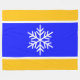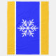 Den här festliga vinterdesignen i säsong har en stor vit nordisk snöflinga som är centrerad inom vitt royal blått och vitt rand med gult orange kant.