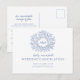 Blått handritat lövmonogram för inställd bröllopsd meddelande vykort