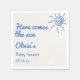 Som ni ser är det en unik sommar och eleganten här kommer duschdockan i sol att ha en designad mall. Med blått hand plockade sol, skrivet namn och datum i blått. Och gräddbohobakgrund. Du kan enkelt anpassa genom att låsa på knappen Anpassa.