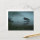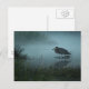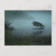 Det här inläggskortet innehåller ett foto av en Underbar blå Heron, som fiskar i en damm i tidigt morgondimman.