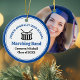 Den här moderna anpassningsbarnas blå marschbanderoll, julprydnad, har student och band namn under trummorna. Anpassa för symfoniska, vind-ensemble- eller konsertbandsmedlemmar eller deras chef för en underbar studenten-keepsakpresentgåva.