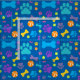 En färglös hund skriver ut mönster på blå bakgrund. Perfektens marionettväv är bara sak för ditt projekt för att syna sällskapsdjur.